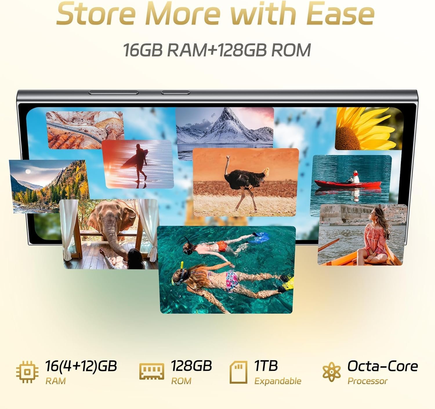 OUKITEL C61 Telefonos Moviles Libres Android 15, 16GB(4+12)+128GB/1TB Smartphone, 6.88″ HD+ 90Hz Telefono Movil, Batería 5150mAh movil, 4G Dual SIM/Face ID/Fingerprint/GPS/OTG,